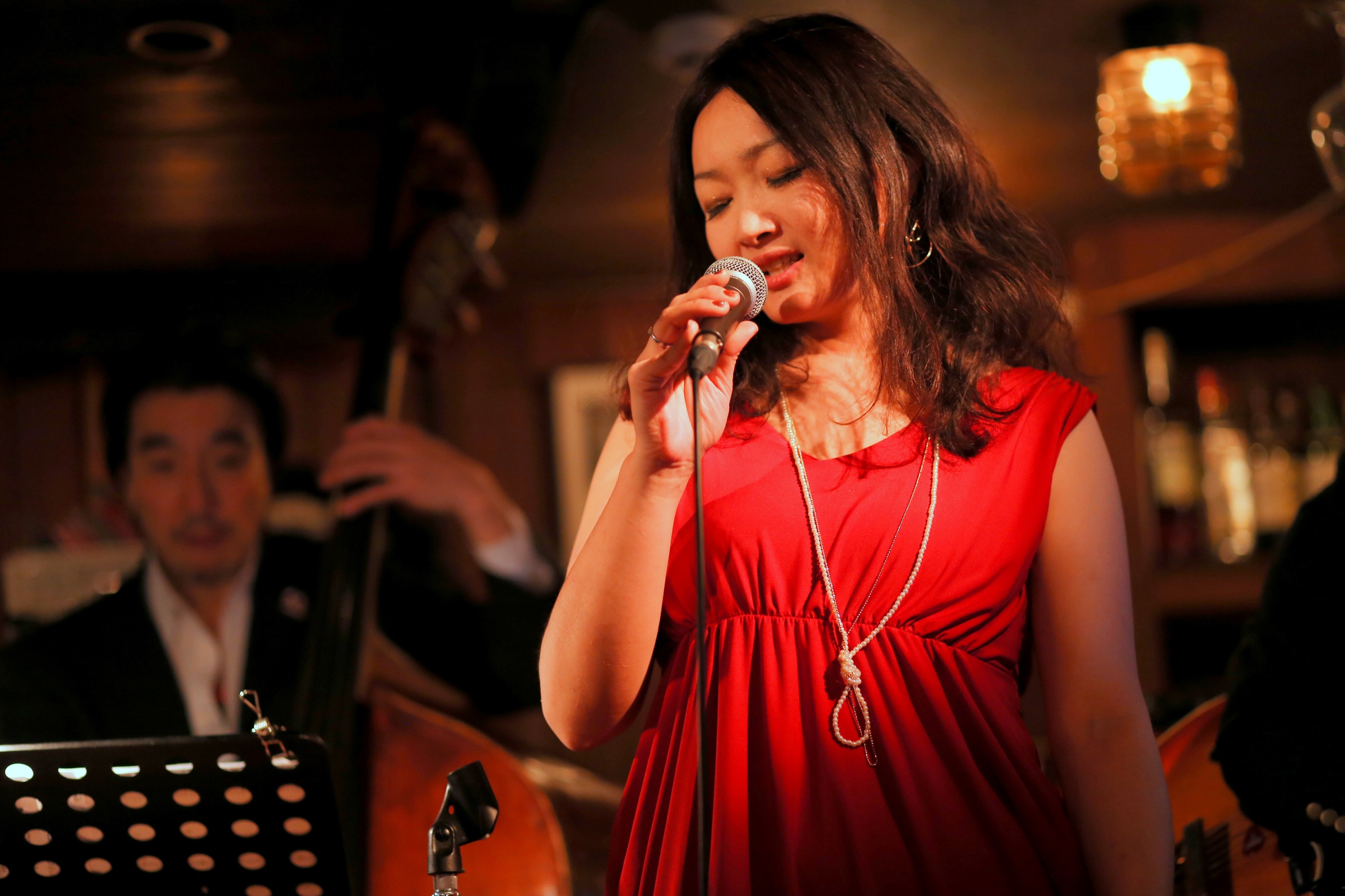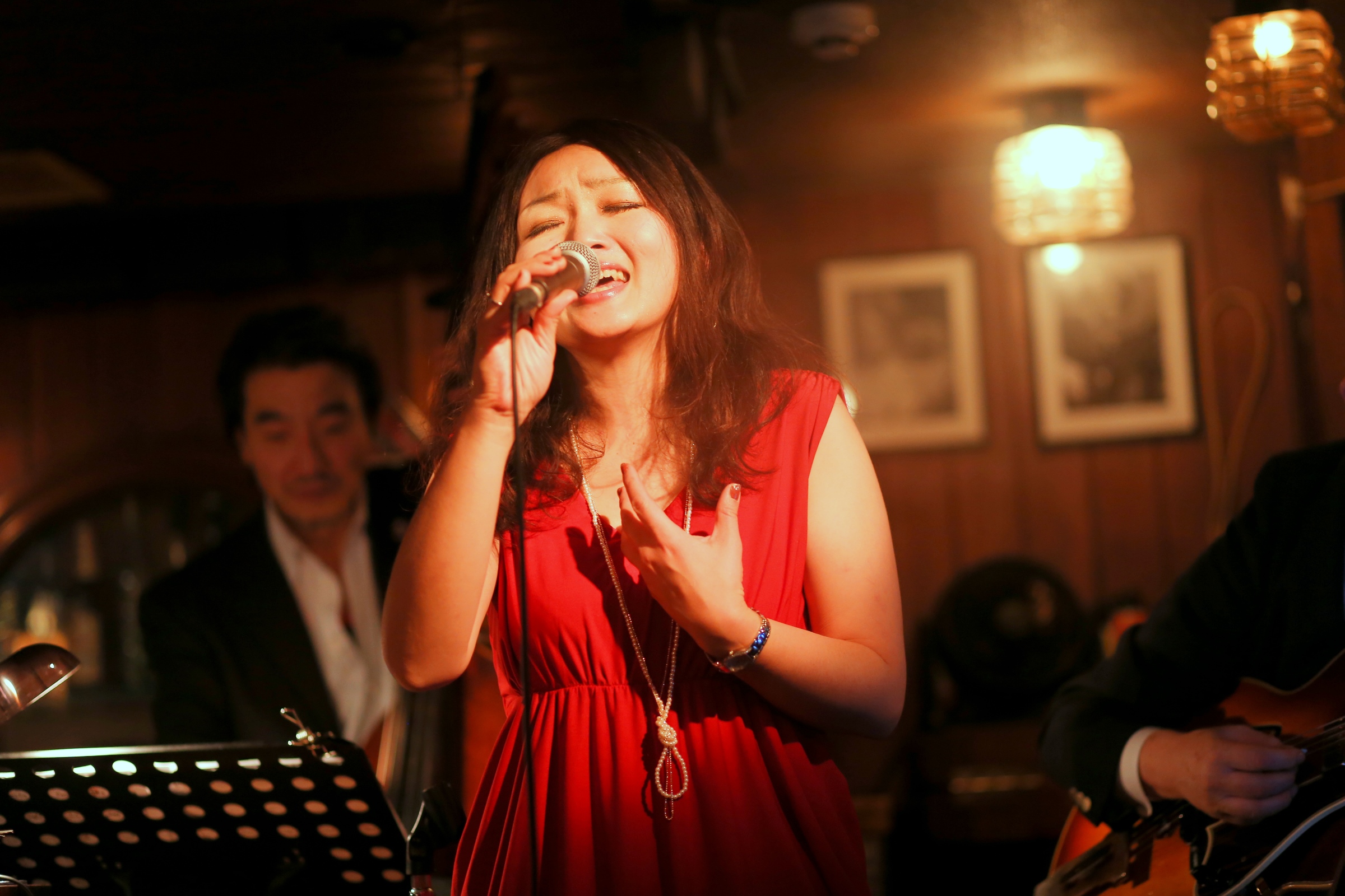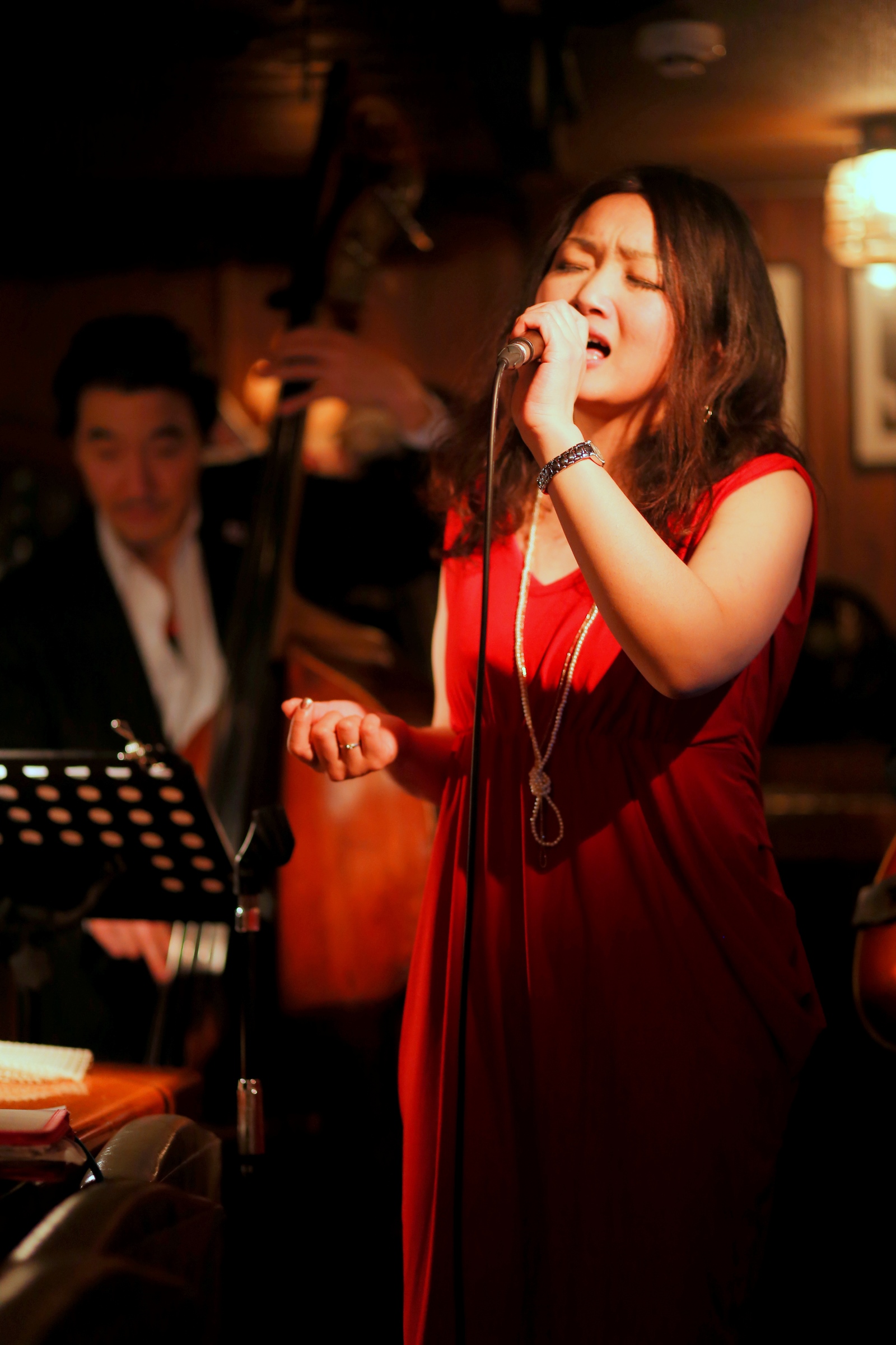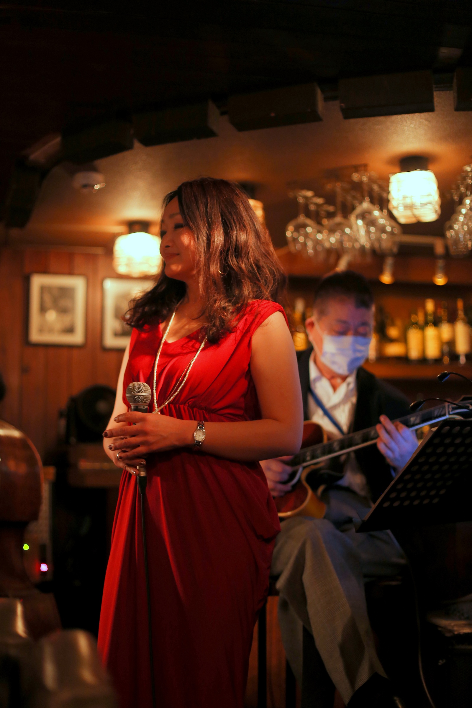 それはまた、会場となったライブバーについても同様です。インテリアの隅々にまでプロの手が行き届き、ライティングに関しても驚くほど照度の落とされた中で非常に効果的にシンガーやアーティストにスポットが当たる様に工夫がなされています。
