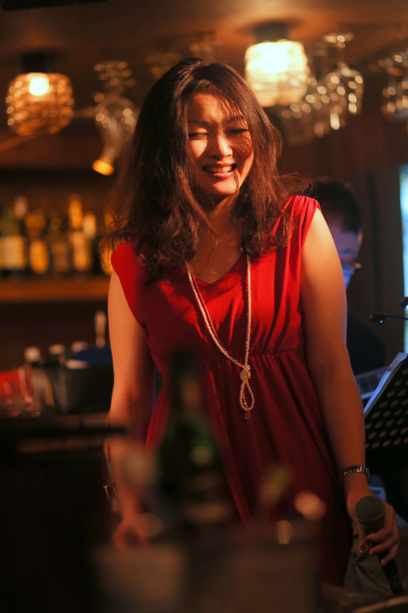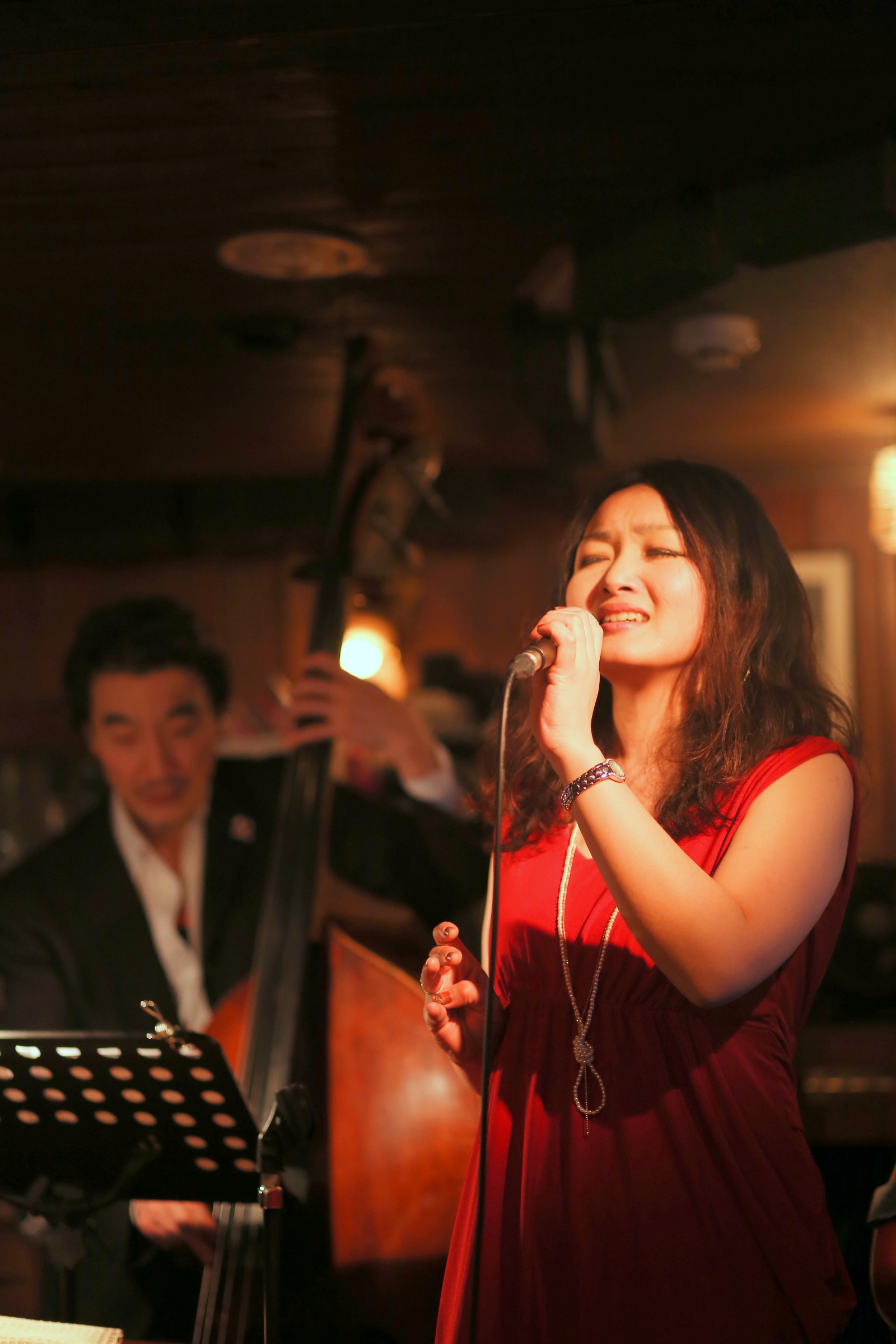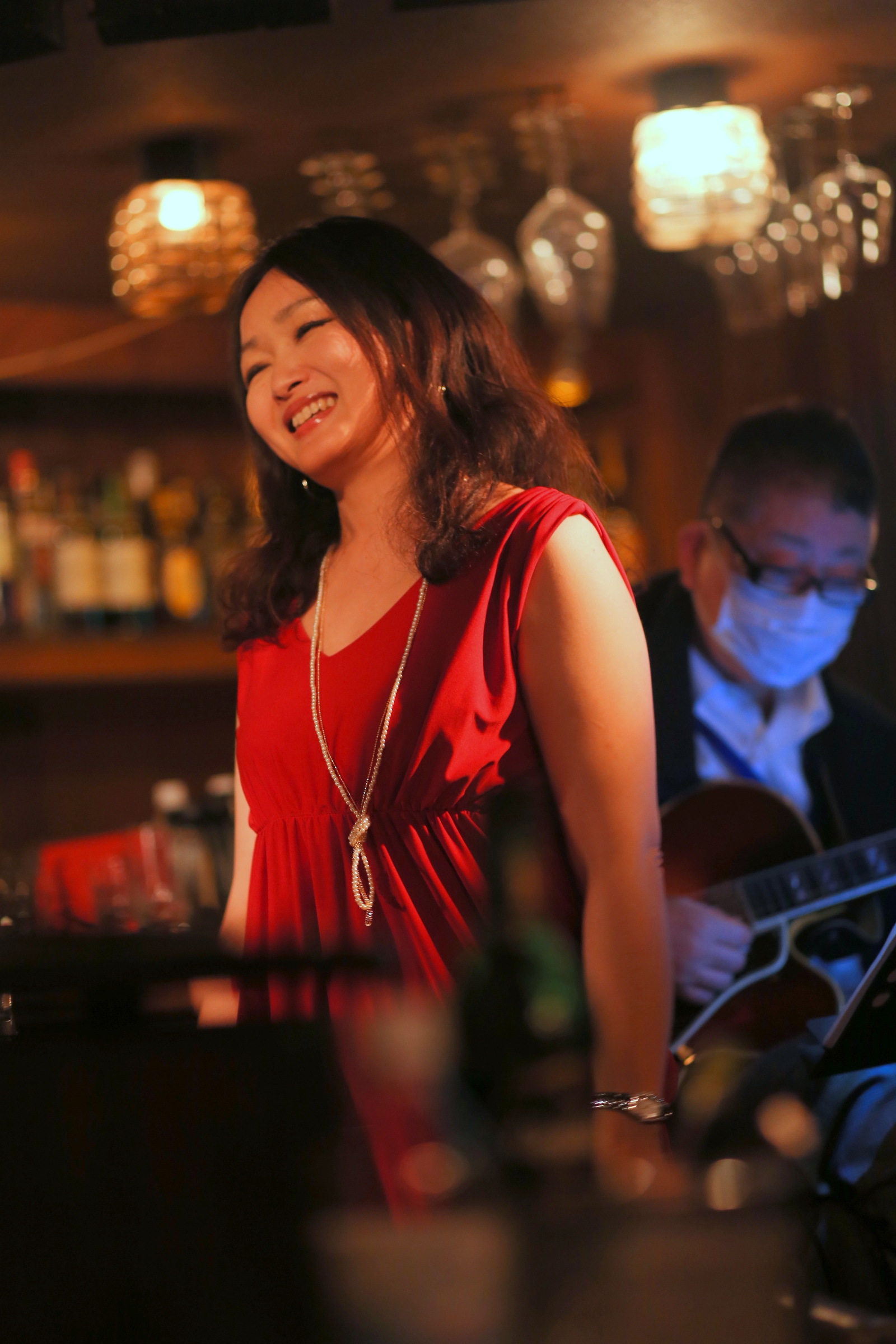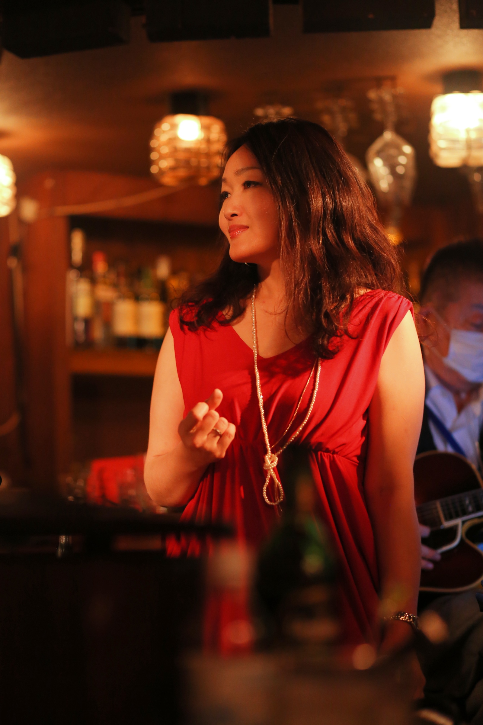 それはまた、会場となったライブバーについても同様です。インテリアの隅々にまでプロの手が行き届き、ライティングに関しても驚くほど照度の落とされた中で非常に効果的にシンガーやアーティストにスポットが当たる様に工夫がなされています。