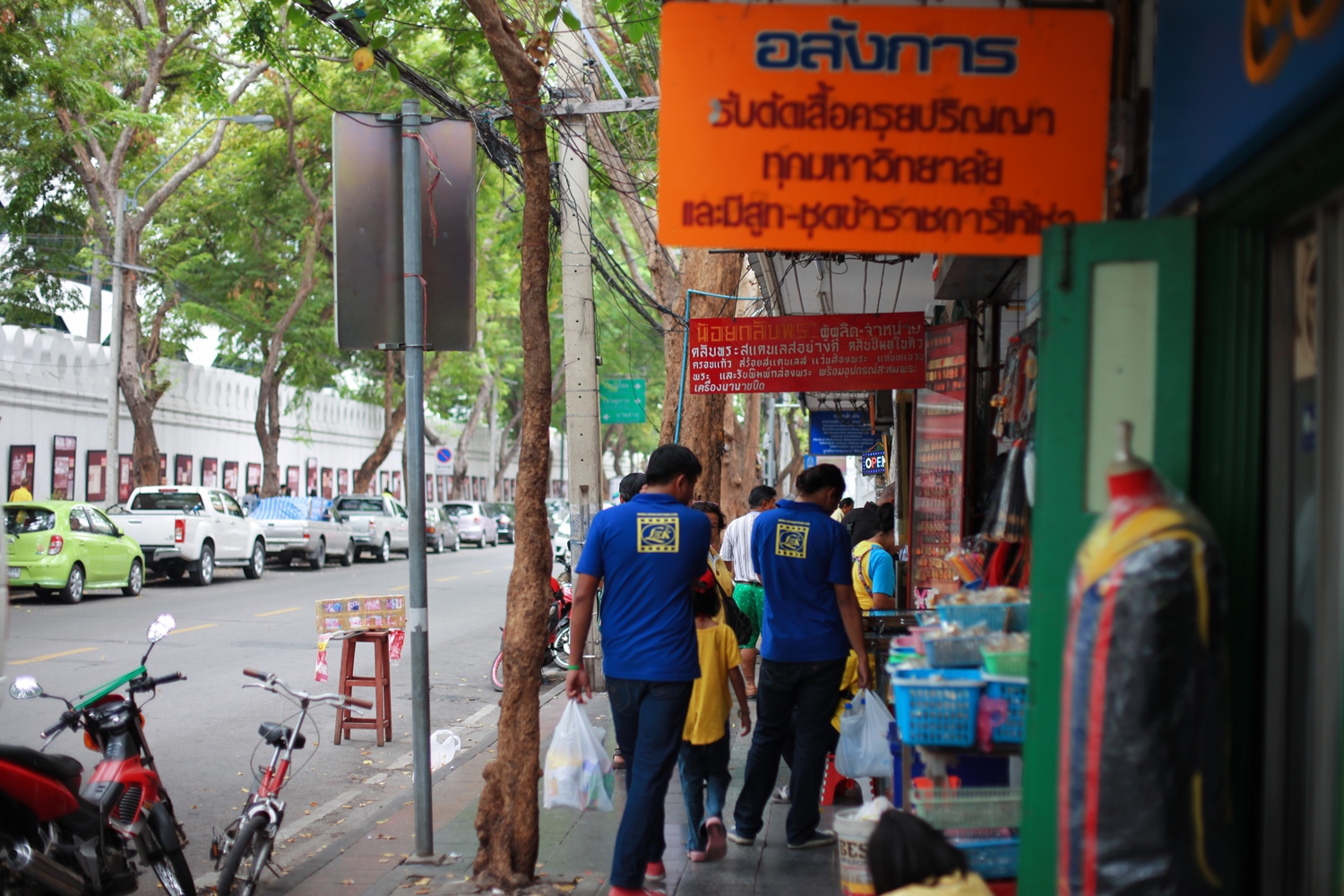 ボートでチャオプラヤ川を北上し王宮前広場に最寄りの船着場で下船。写真は王宮前広場の西側周辺の様子です。