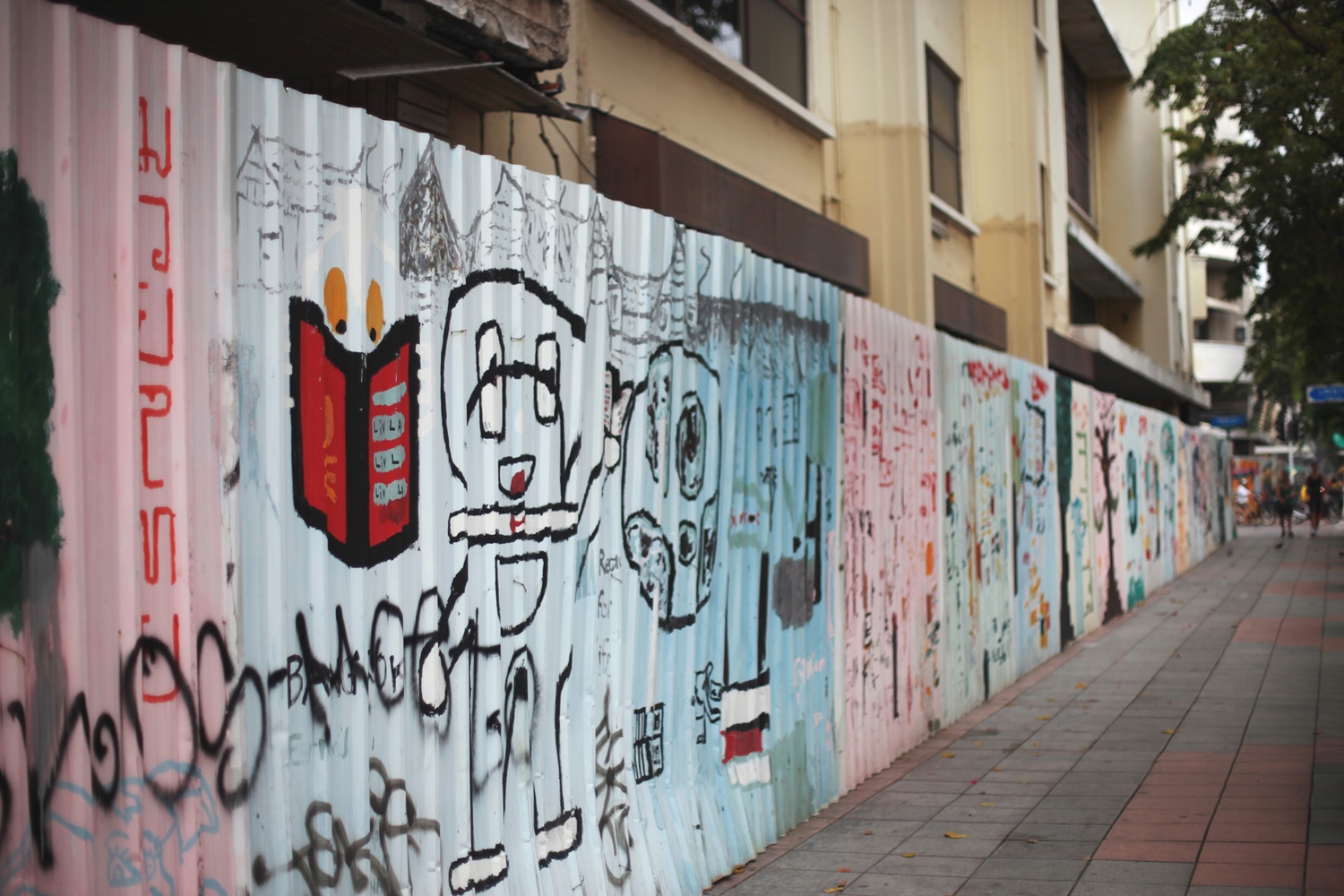 どこかで見たことのあるような無いような落書き。背景の波板もきっちりとブルーを選んでいるところがまた律儀というか解っているというか。