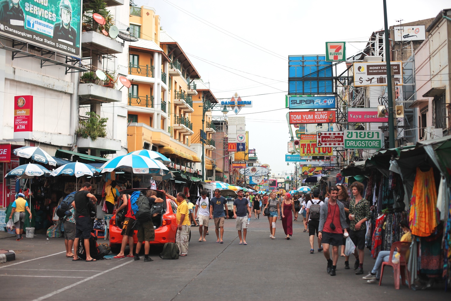 外国人バックパッカーの集う通りとして有名なカオサン通りに到着しました。見渡す限りほとんどが西洋人で一体ここはどこ?という感じです。期待していた程の感銘は受けませんでした。