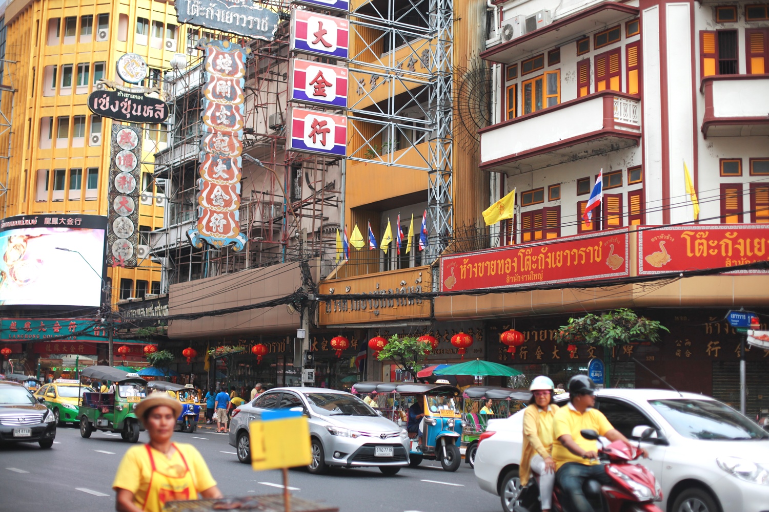 このチャイナタウンは王宮や有名なワット・ポーからもさほど離れておらず、またクルンテープ駅(別名ファランポーン駅、バンコク中央駅)からも近いのですがヤワラート通りというメインストリートを中心に中華圏の町並みが結構な広さで面的に広がっています。