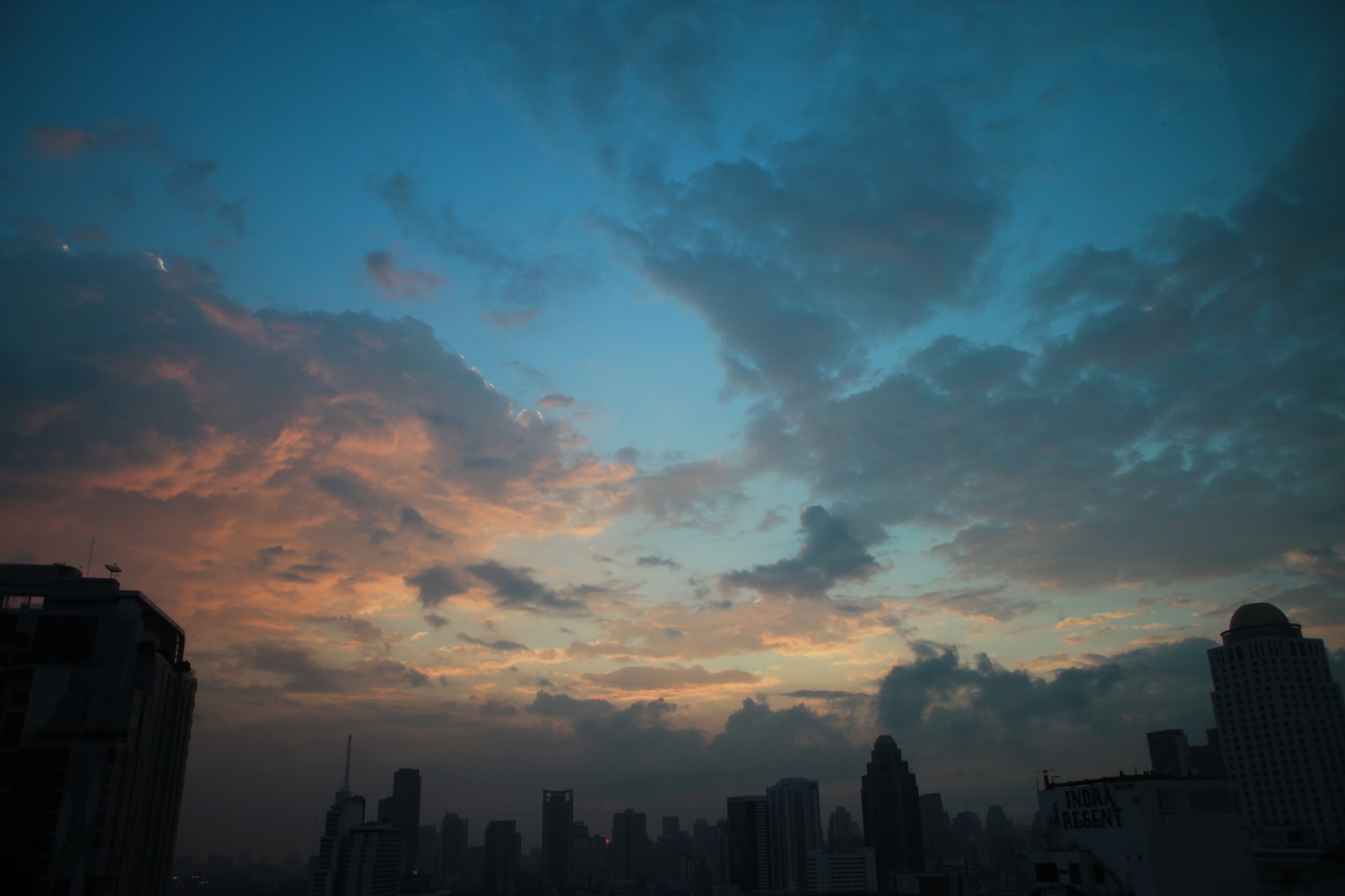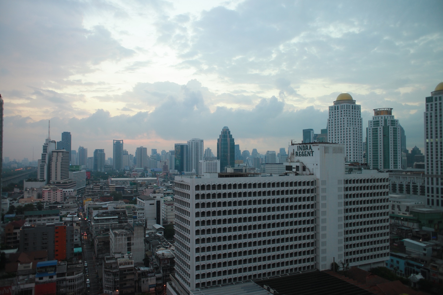 バンコク2日目。写真はホテルフロントのある18Fのロビーから撮影したもので朝6時過ぎ、夜明けの町並みを写しています。