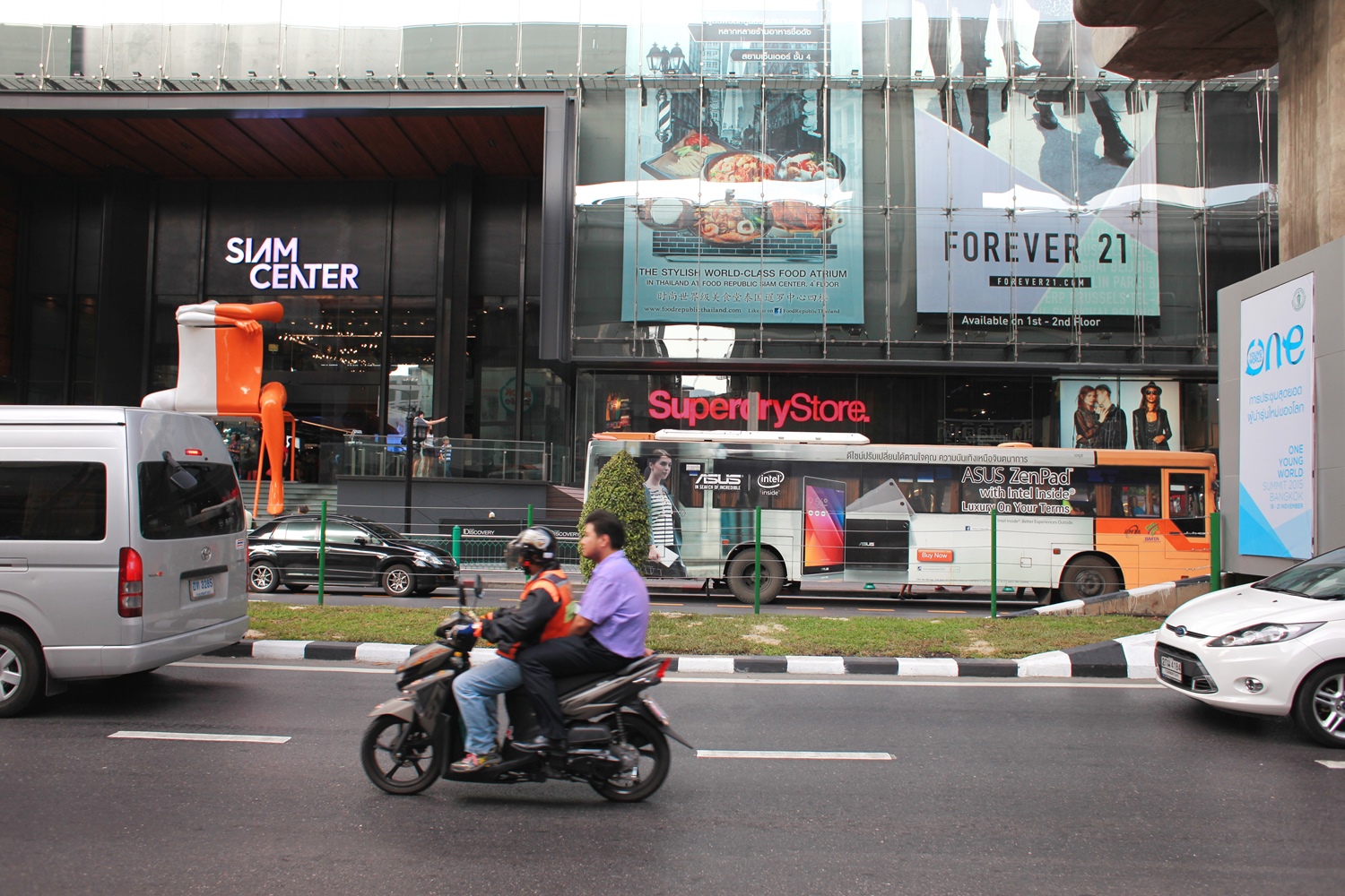 バンコクの街の拠点の1つであるBTSサイアム駅のすぐ下側を走る道路。