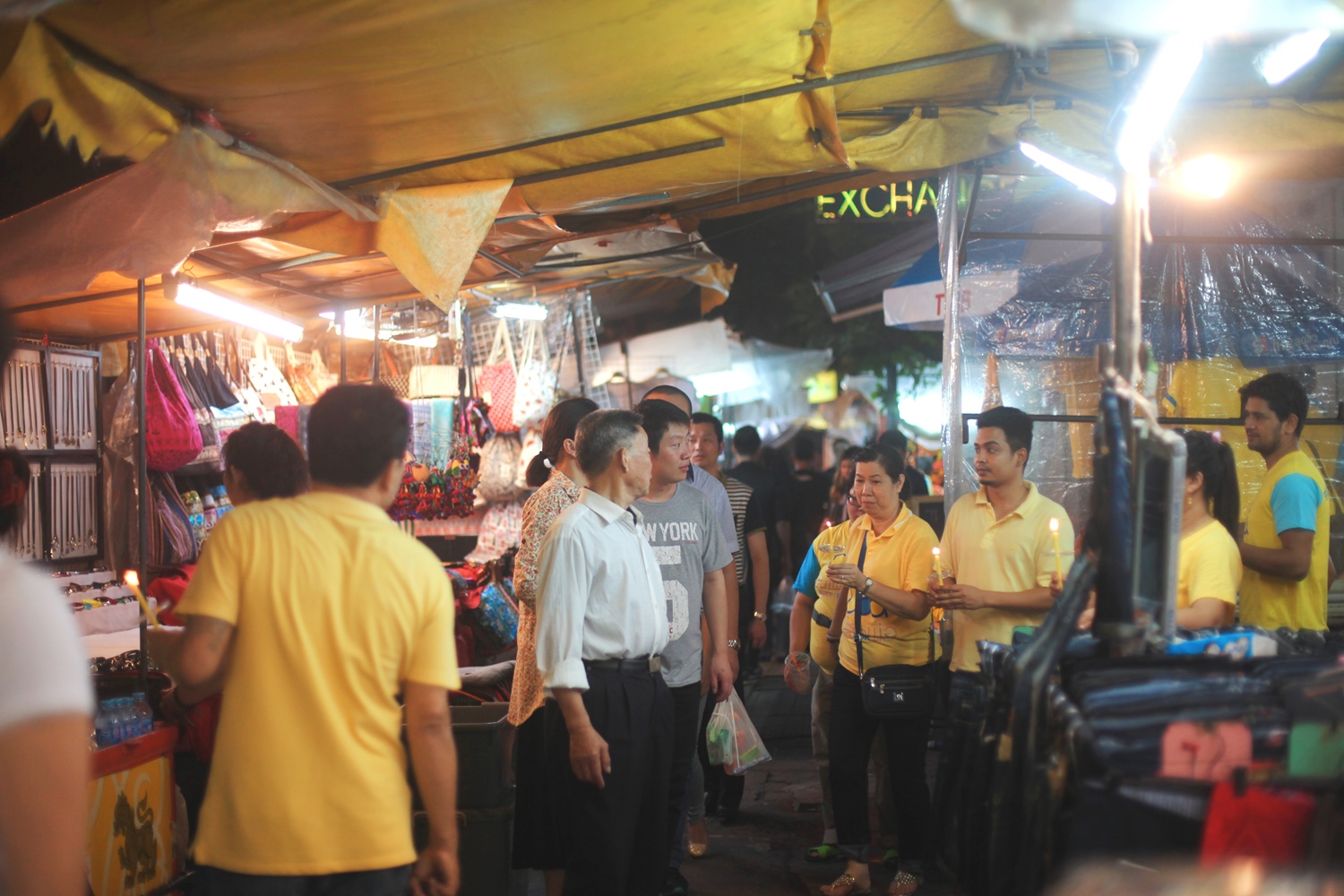お姉さん達もおとなしめの出で立ちで、国王の生誕を祝うために黄色いシャツに黄色いロウソクを持って店の前で記念撮影などしていました。